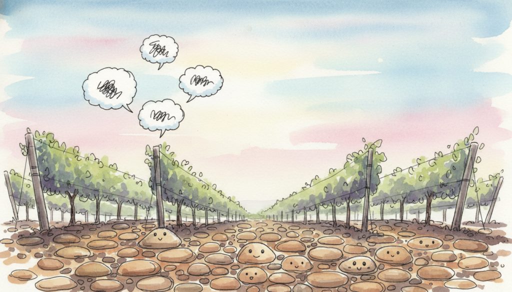 Aqui o solo é rico em calhaus arredondados, gravilha de origem vulcânica e um microclima próprio. Resultado? Um estilo muito particular, com vinhos que parecem ter nervo e carácter — como quem leva sol na cara e poeira nas botas.